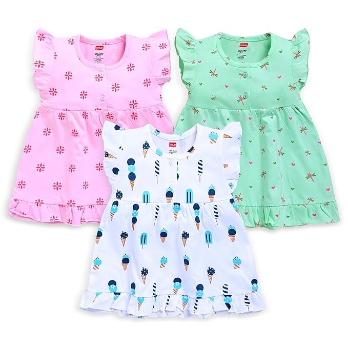 Baby Girls 100% Cotton Sleevless Girls Frock Pack of 3