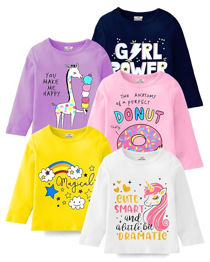 About this item Material: Cotton Blend Sleeve Type: Full Sleeves Neck Type: Round Neck Included Items: 5 T-Shirts Origin: Made in India